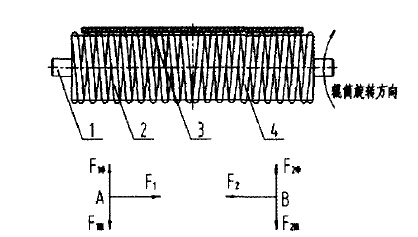 1-彈簧式輥筒;2-左旋彈簧;3-輸送帶;4-右旋彈簧