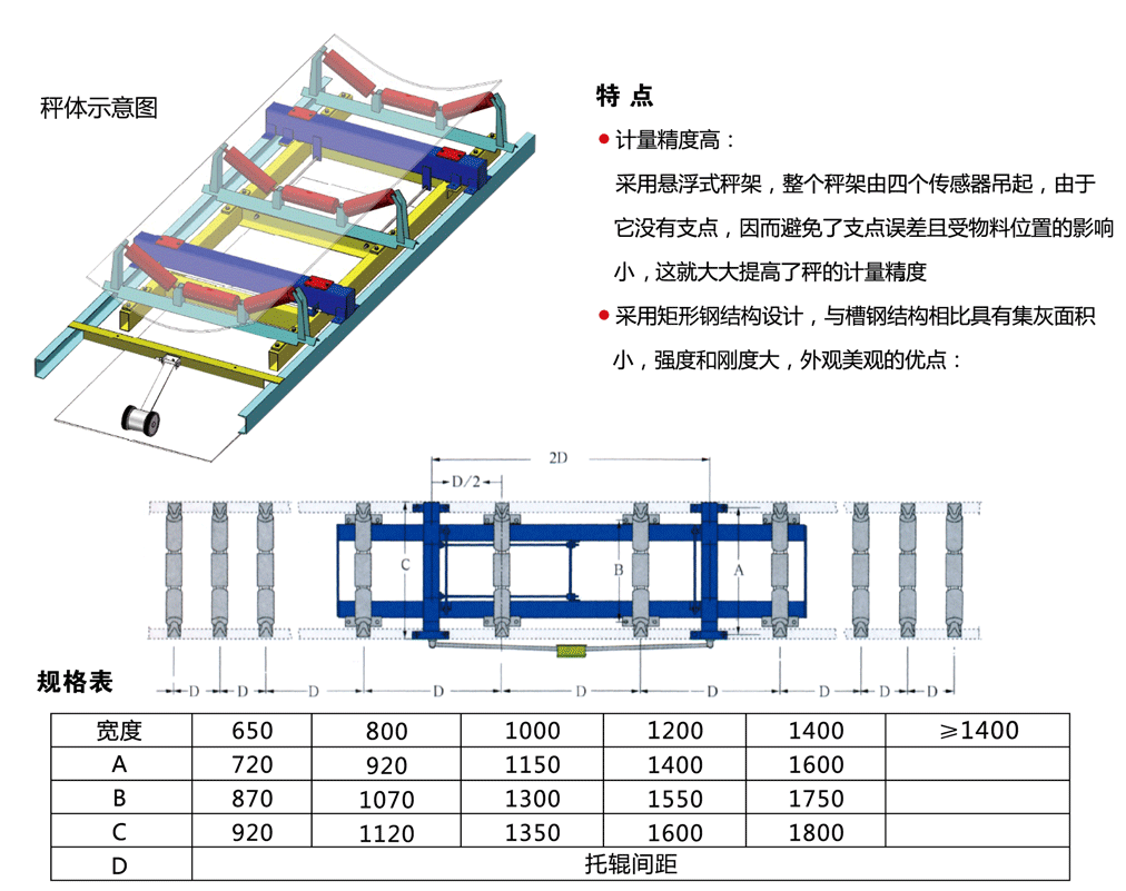 四個稱重傳感器吊掛式全懸浮秤架,無支點,防塵防淋水,稱量精度高,穩(wěn)定性好;